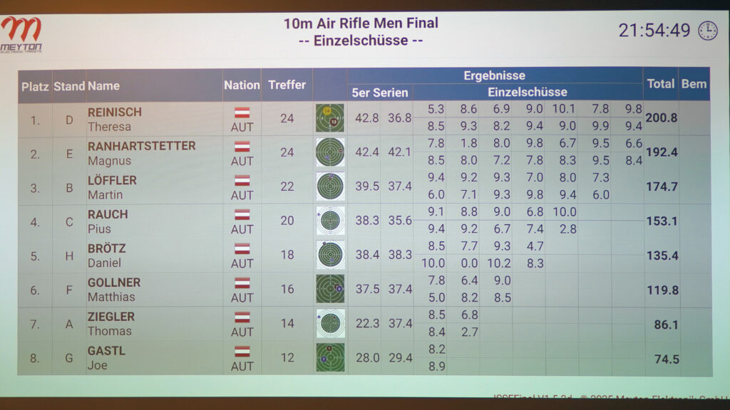Ganz an der Spitze, und das zum Schluss sogar mit deutlichem Vorsprung, das einzige Mädchen im Feld der besten acht: Theresa Reinisch kam nach den 24 Finalschüssen auf hervorragende 200,8 Ringe und gewann vor Magnus Ranhartstetter und Martin Löffler.