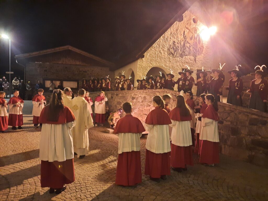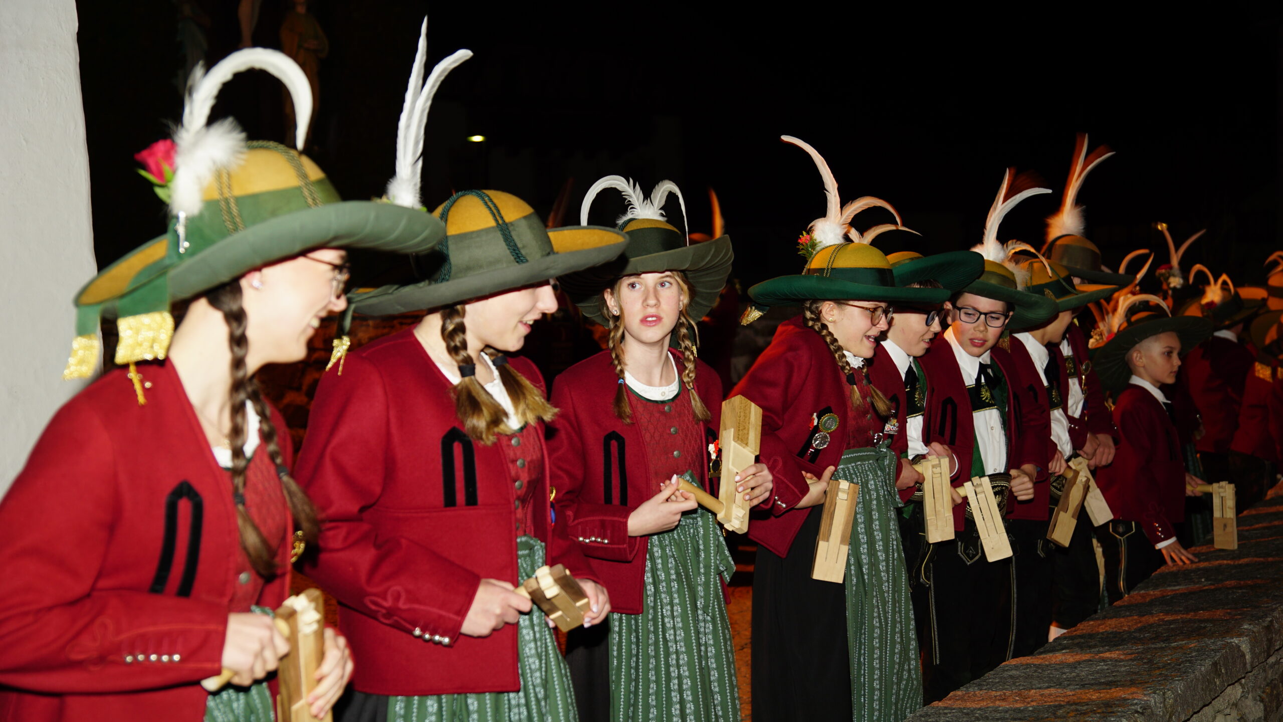 Für die Jungschützen und Jungmarketenderinnen war frühes Aufstehen angesagt: Beginnend um 6 Uhr früh zogen mehrere Gruppen durch Inzing und die Inzinger Weiler, um die Kirchenglocken (die zu dieser Zeit bekanntermaßen in Rom sind) zu ersetzen. Nach sieben Einsätzen ließen die 24 Mädchen und Burschen in der Osternacht ihre Ratschen dann ein letztes Mal ertönen, um die Gläubigen zur Auferstehungsfeier zu rufen.